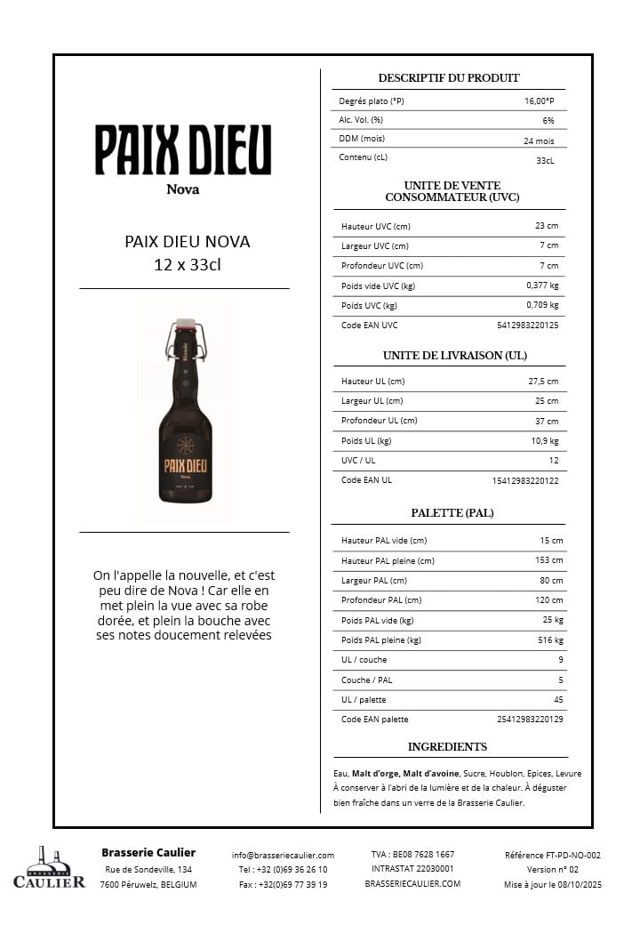 FT-PD-NO-002 Fiche technique Paix Dieu Nova 12x33cl FR V2